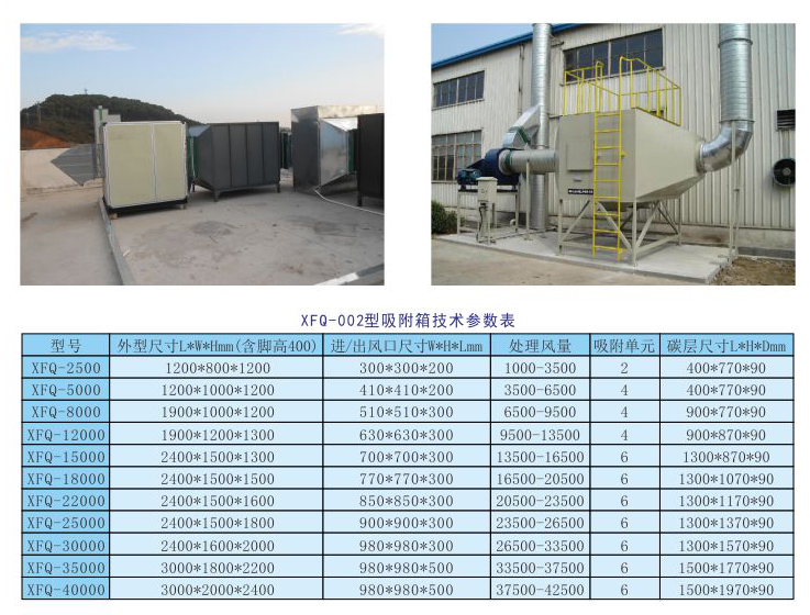 吸附效率高、运行成本低、维护方便、能够同时处理多种混合废气。活性碳吸附箱尤为适合低浓度大风量或高浓度间歇排放废气的作业环境。主要应用领域有:电子元件生产、电池(电瓶)生产、酸洗作业车间、实验室排风、冶金、化工厂、医药生产厂、涂装车间、食品及酿造、家具生产。也可与喷漆室、烘干室和喷、烘两用室配套使用,用于处理所产生的有机废气。