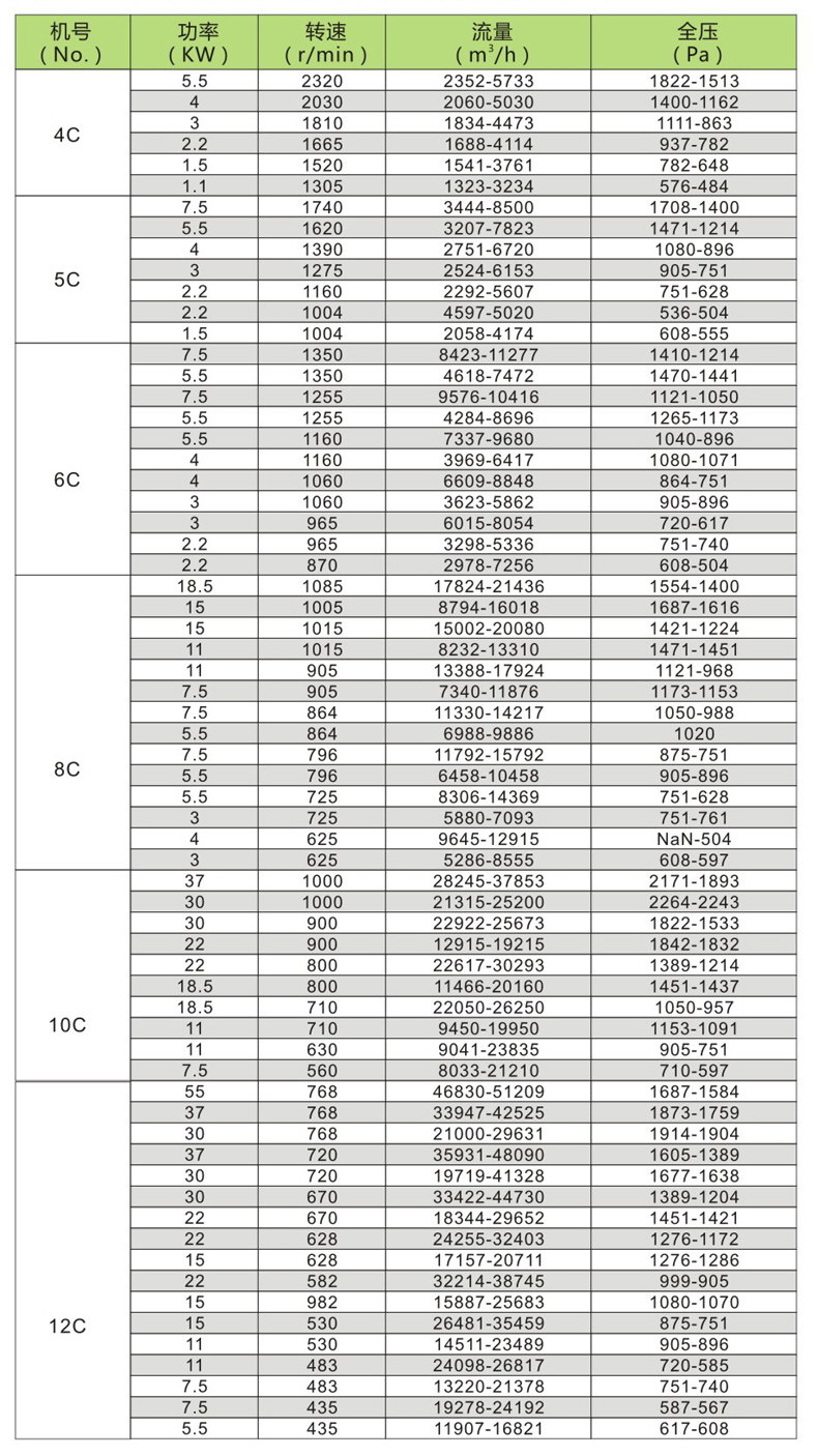 本系列风机为C式皮带传动,有一个个前弯曲的钢板叶片,具有风量大,气动性能压力高,特性典线平坦,稳定。适用于排送含有木质碎屑,纤维和尘土等空气混合物,除尘和物料输送场合中使用。介质温度≤80℃,也可作为一般通风换气之用。(也有A式和D式传动)