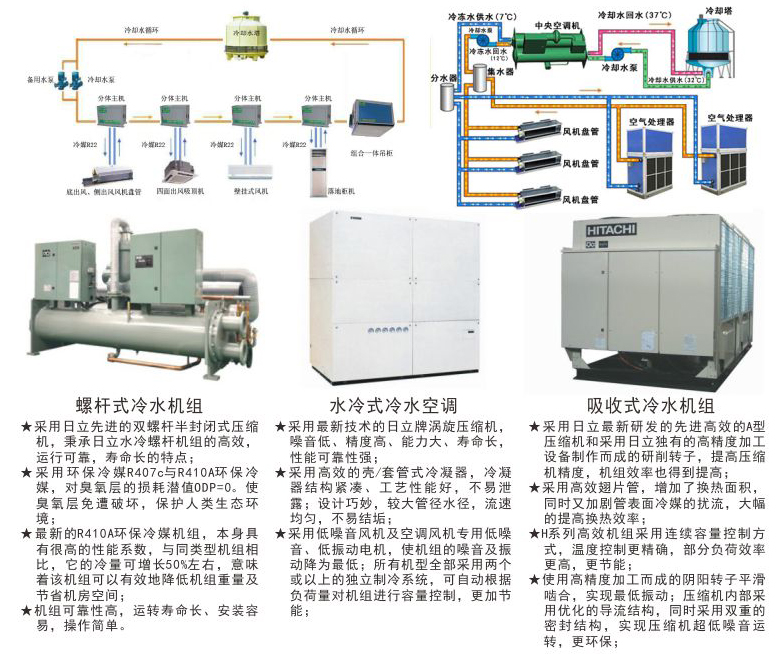 中央空调和家用空调工作原理差不多,都是利用冷媒进行液态与气态转化时产生吸热与放热这一物理现象。中央空调系统主要分为制冷剂系统、水系统、空气系统、空气-水系统,这四种系统示意图不同,原理也各不相同。